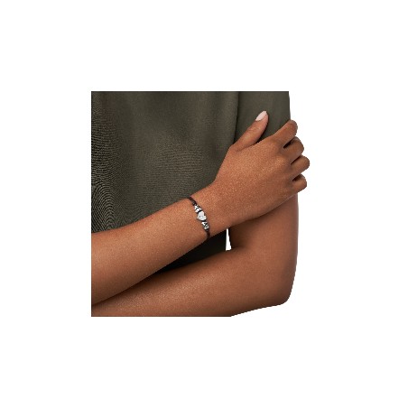Les nuances de l'acier et du cuir se marient harmonieusement, offrant un équilibre parfait entre la robustesse du métal et la douceur du cuir. Le bracelet présente une forme de chaîne délicate, rendant hommage à l'amour de la mode et du style. Le motif du cœur sur le bracelet est une déclaration subtile d'affection et de passion.