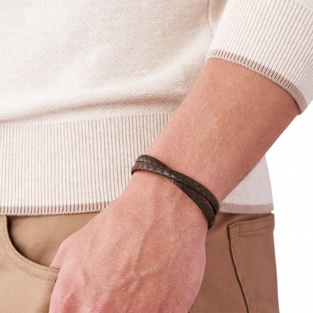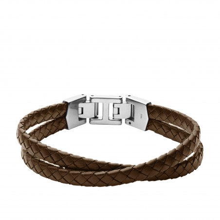 Découvrez le bracelet multi rangées Fossil, un bijou qui allie harmonieusement robustesse et style vintage. Conçu par la marque Fossil, reconnue pour la qualité de ses produits, ce bracelet est un mélange de cuir marron tressé et d'acier argenté. Sa double rangée de cuir naturel ajoute du caractère à votre poignet, et son fermoir en acier assure une fixation sûre et confortable.