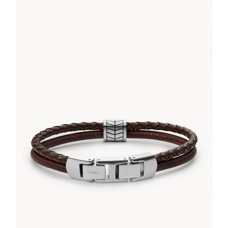 Bracelet Fossil multi rangs Multistrands en acier et en cuir marron