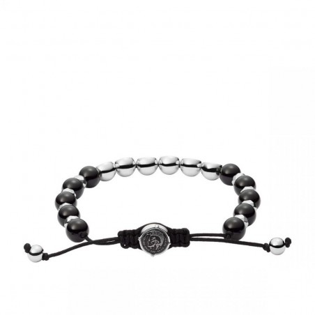 Bracelet Homme Diesel perles d'agate noires et d'acier gris argent
