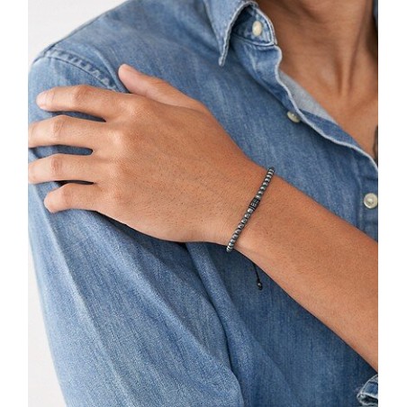 Découvrez le bracelet pour homme Fossil, une combinaison élégante de cordon noir et d'hématites grises. Ce bijou de la marque Fossil, connue pour sa qualité et son design innovant, est un ajout distinctif à toute collection de bijoux pour homme.