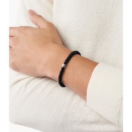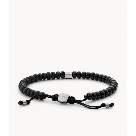 Bracelet homme Fossil perles d'onyx et pierres de lave