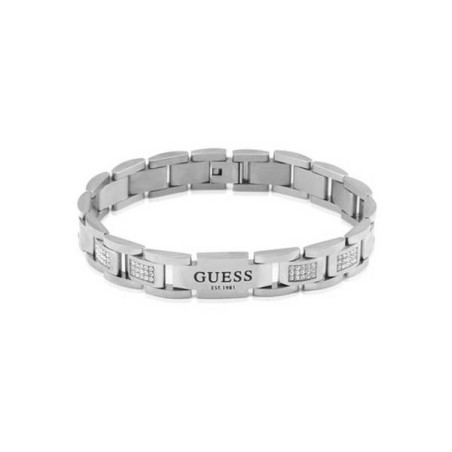 L'acier argenté scintille sous la lumière, tandis que les oxydes de zirconium blancs ajoutent une touche de mystère et de sophistication. Qu'il soit porté seul ou combiné à d'autres bijoux, le bracelet homme Guess Frontiers est une déclaration de style audacieuse et intemporelle.