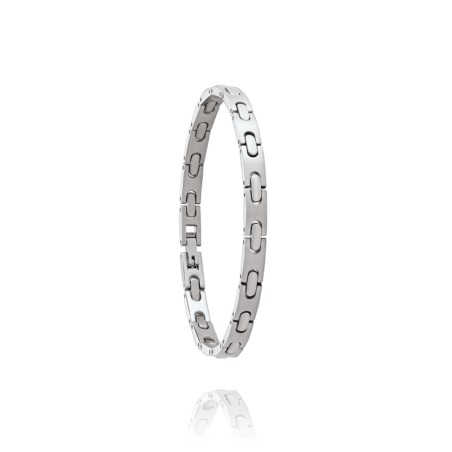 Sa couleur argentée apporte une touche de raffinement qui s'accorde à tous les styles, des plus classiques aux plus audacieux. Avec une longueur de 21 cm, ce bracelet enveloppe délicatement le poignet, créant une présence discrète mais indéniable.