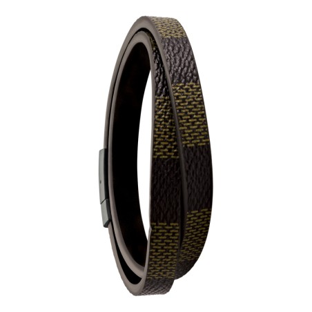 Bracelet Homme Jourdan double tour en Cuir brun et fermoir en Acier