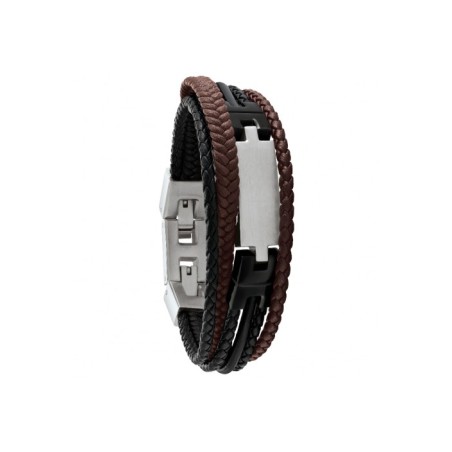 Bracelet Homme Jourdan en Acier argenté et Cuir tressé