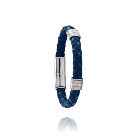 Bracelet Homme Jourdan - Kamen - en Acier argenté avec vis en or et caoutchouc bleu tressé