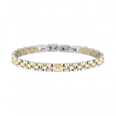 Découvrez le bracelet Homme Maserati en acier bicolore, proposé par votre bijoutier Carador. Ce bijou pour hommes de la célèbre marque Maserati allie discrétion et tendance. Il se compose de maillons en acier argenté, reliés entre eux par des éléments dorés, créant un effet bicolore du plus bel effet. Sa pièce maîtresse est une plaque rectangulaire arborant fièrement le trident de Maserati, symbole de puissance et d'élégance. Ce bracelet Maserati allie parfaitement robustesse et raffinement grâce à sa matière en acier. De genre masculin, il se mariera parfaitement avec toutes vos tenues. Son style tendance et sa couleur bicolore rendent ce bracelet unique en son genre. Vous apprécierez son design fantaisie qui allie originalité et sophistication. Portez ce bracelet Maserati en acier bicolore et affichez votre style avec fierté et élégance.