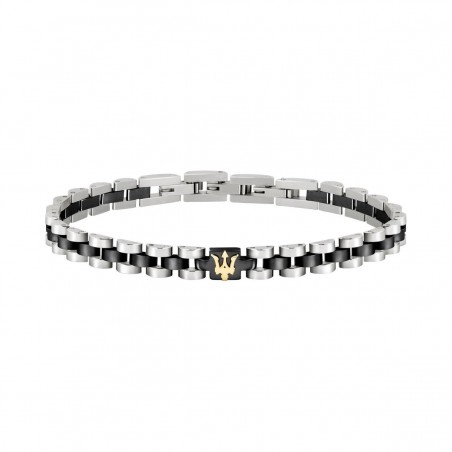 Découvrez le charme discret du Bracelet Homme Maserati en acier bicolore, un bijou de choix pour l'homme moderne, proposé par votre bijoutier Carador. Conçu par la marque Maserati, ce bracelet se distingue par son style tendance et discret, parfait pour toutes les occasions. Il est composé de maillons en acier argenté reliés les uns aux autres par des éléments noirs, offrant ainsi un jeu de couleurs subtil et élégant. Le logo de la marque, un trident doré, trône majestueusement au centre du bracelet, ajoutant une touche de distinction. Ce bijou est de type fantaisie et est fabriqué avec un savoir-faire unique pour un rendu impeccable. Le bracelet Maserati en acier bicolore, c'est l'assurance d'un style tendance et d'une élégance sans pareil.
