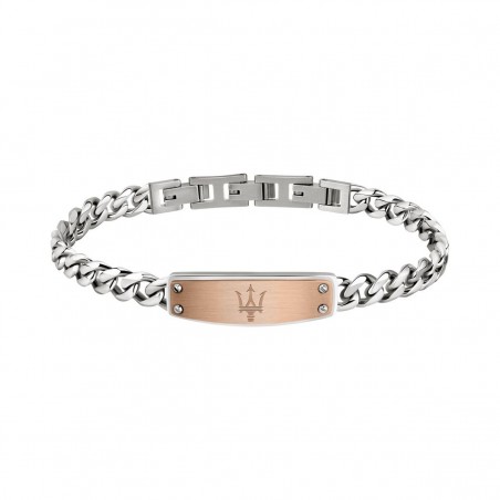 Découvrez le Bracelet Homme Maserati en acier, un bijou de caractère proposé par votre bijoutier Carador. Doté d'une maille milanaise imposante, ce bracelet couleur argent se ferme avec une boucle à cliquet, assurant à la fois confort et sécurité. Le logo de Maserati, un trident, embellit la plaque rectangulaire bicolore qui constitue le motif principal du bracelet. Comme Poséidon fendant les flots, portez ce bijou d'exception qui dégage une aura de puissance. Fabriqué en acier, il est robuste et durable. Son style tendance se marie parfaitement avec un look urbain ou décontracté. Ce bracelet fantaisie pour homme, doté d'une couleur doré rose, s'adaptera parfaitement à votre poignet. Marquez votre style avec ce bracelet Maserati, un bijou qui allie élégance et virilité.