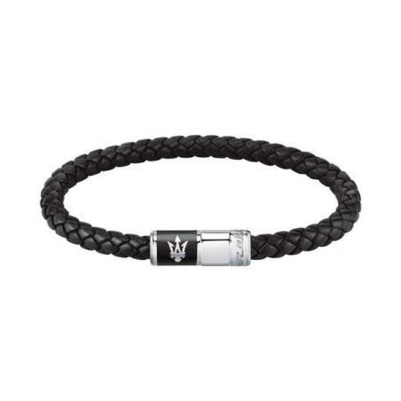 Découvrez le bracelet homme Maserati en cuir noir, une création fine et délicate proposée par la Bijouterie Carador. Ce bijou tendance, issu de la collection cuir Maserati, est conçu dans un cuir tressé de couleur noire, offrant une allure chic et originale à votre tenue. L'élément d'acier argenté qui relie le cuir arbore fièrement le logo de Maserati, le trident, ajoutant une touche de sophistication à ce bracelet. D'une longueur de 21 cm, il s'adapte parfaitement à votre poignet et se porte avec confort tout au long de la journée. Son style sobre et élégant est complété par une finition argentée qui confère à ce bracelet une allure moderne et audacieuse. Que vous le portiez seul ou en association avec d'autres bijoux, le bracelet homme Maserati en cuir noir est une pièce indémodable qui ajoutera une note d'élégance à chacun de vos looks.