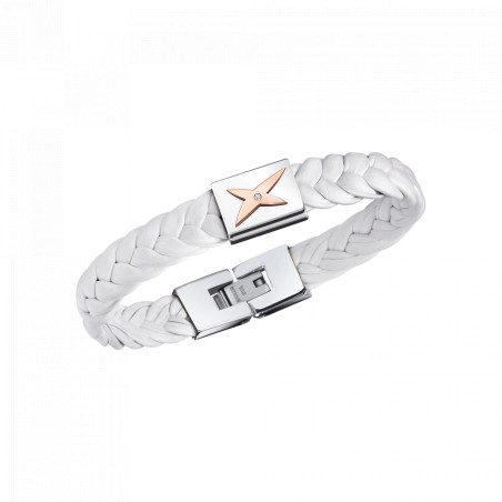 BRACELET HOMME MAUBOUSSSIN "MEC J'TE KIFF" EN CUIR BLANC ET DIAMANT