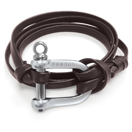Bracelet Homme Phebus Acier argenté et Cuir marron