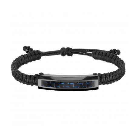 Bracelet Homme Phebus Acier noir Cordon de Cuir tressé et Plaque en Carbone