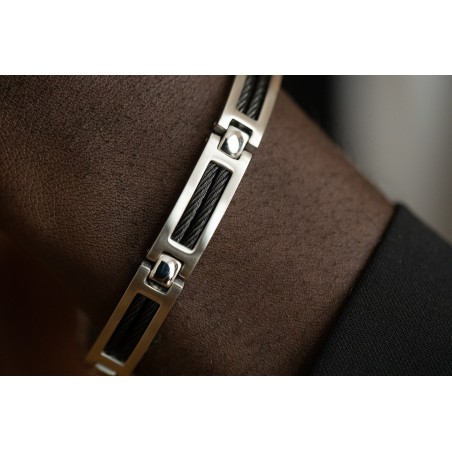 Découvrez le bracelet pour homme de la marque PHEBUS, proposé par votre bijoutier Carador. Ce bijou masculin arbore une esthétique virile et tendance, qui saura vous séduire. Composé de sept maillons en acier argenté, il est orné de résine noire pour un contraste élégant. Les motifs de câbles noirs tressés insérés dans les maillons ajoutent une touche unique à ce bracelet. Doté d'un fermoir de type boucle à cliquet, il assure une sécurité optimale lors du port. D'une longueur de 21 cm, il se porte facilement et s'adapte à toutes les occasions. Ce bracelet de type fantaisie est l'accessoire idéal pour compléter votre style. Optez pour ce bijou tendance et robuste, qui allie parfaitement masculinité et élégance. Livraison gratuite en magasin Carador.