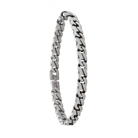 Le design de ce bracelet est de type gourmette, caractérisé par ses maillons entrelacés qui assurent une excellente tenue autour du poignet. Avec une longueur de 21 cm, il est conçu pour s'adapter à la majorité des poignets masculins.