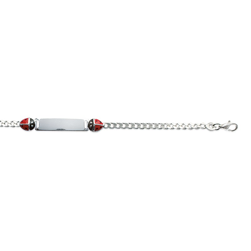 Offrez une touche d'enfance et d'originalité avec ce Bracelet Identité Bébé Coccinelles en Argent 925/000 Rhodié, disponible chez votre bijoutier Carador. Conçu spécifiquement pour les enfants, ce bijou se distingue par sa matière argentée et son style fantaisie. Deux charmantes petites coccinelles ornent chaque côté de la plaque, apportant un air ludique et unique à cette identité bébé. La plaque mesure 2,3 cm et le bracelet dispose d'une longueur de 16 cm, une dimension adaptée pour les petits poignets. Les nuances de rouge sur les coccinelles ressortent magnifiquement sur l'argent du bracelet, ajoutant une touche de couleur bienvenue. Ce bijou est bien plus qu'un simple bracelet, c'est une véritable pièce de fantaisie qui sera appréciée par les enfants et leurs parents. Faites le choix d'un bijou qui allie élégance et innocence avec ce Bracelet Identité Bébé Coccinelles en Argent 925/000 Rhodié.
