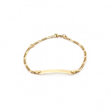 Cette plaque est la toile vierge où peuvent être gravés le prénom et/ou la date de votre choix, conférant une touche personnelle et intime à ce bijou. Le bracelet est dénué de pierres ou ornements superflus, laissant l'or jaune être la star incontestée. Son aspect classique, combiné au métal précieux, donne au bracelet un look intemporel qui ne se démodera jamais.
