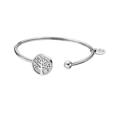 Bracelet jonc ARBRE DE VIE femme lotus style en acier couleur argent