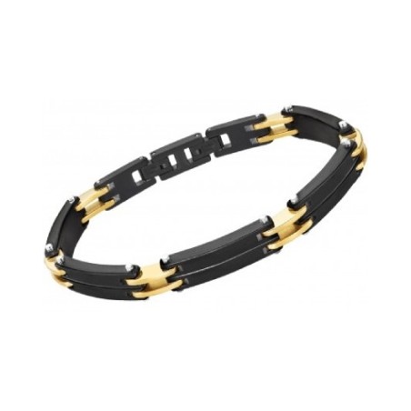 Bracelet Lotus Homme en Acier Bicolore Noir et Doré