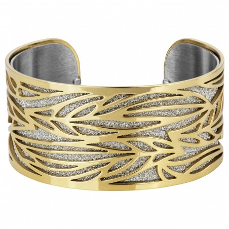 Bracelet Manchette Amporelle en Acier doré motif floral glitter blanc