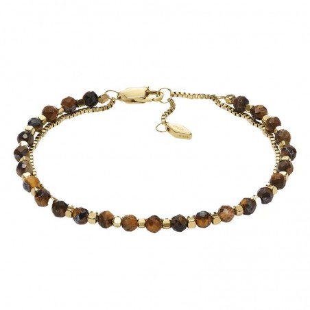 Bracelet perles Femme Fossil en acier doré et oeil de Tigre