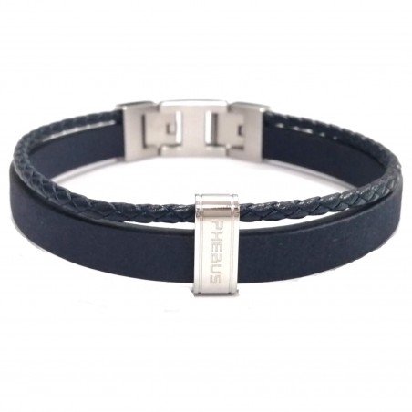 Découvrez le bracelet Phébus pour homme, un bijou intemporel proposé par votre bijoutier Carador. Ce bracelet double, très en vogue, combine avec finesse de l'acier et du cuir de vachette. Une partie est lisse, l'autre tressée, les deux étant reliées par une plaque estampillée du nom de la marque.