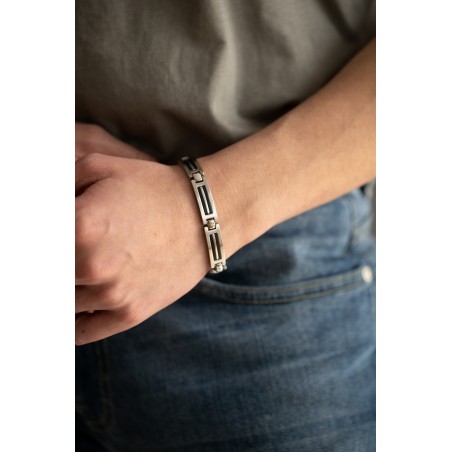 Découvrez le bracelet Phebus 35-0505, une pièce masculine et élégante sélectionnée pour vous par votre bijoutier Carador. Ce bijou est composé de sept maillons en acier argenté rehaussés par des bandes de résine noire. Il incarne la tendance actuelle avec un style affirmé et un jeu de contrastes saisissant entre l'acier brillant et la résine mate. Vous apprécierez la solidité et le confort de ce bracelet de 21 cm de longueur, qui se ferme en toute sécurité grâce à son fermoir type boucle à cliquet. Que ce soit pour un événement spécial ou pour agrémenter votre style quotidien, ce bracelet Phebus se porte en toutes occasions. Sa matière résistante et sa finition soignée en font un choix de prédilection pour les hommes en quête d'un bijou à la fois moderne et intemporel. Laissez-vous séduire par l'élégance discrète et le caractère de ce bracelet Phebus, un bijou qui ne manquera pas d'ajouter une touche de sophistication à votre poignet.