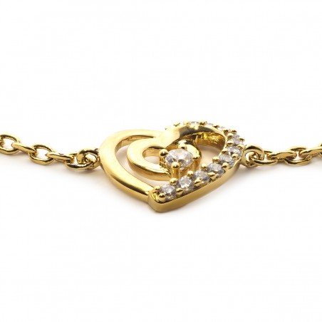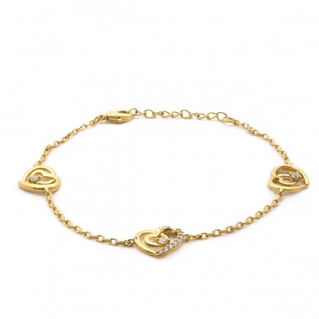 Succombez au charme de ce bracelet romantique en plaqué or jaune, une sélection soignée de votre bijoutier Carador. Gracieux et délicat, ce bijou habillera votre poignet d'une touche d'élégance au quotidien. Le bracelet mesure 16+3cm, une taille idéale pour un confort optimal. Il est composé d'une chaîne en maille forçat, qui enserre trois cœurs inscrustés d'oxyde de zirconium, ajoutant une note de brillance à votre allure. Sa couleur dorée et ses motifs en forme de cœur font de ce bijou une pièce féminine par excellence. Le bracelet est de type fantaisie, se prêtant à toutes les occasions, qu'elles soient décontractées ou formelles. Les pierres incolores ajoutent une touche de sophistication sans être trop ostentatoires, ce qui fait de ce bracelet un choix judicieux pour celles qui apprécient la discrétion élégante. Son style classique saura séduire les amatrices de bijoux intemporels. Ajoutez une touche d'amour à votre collection de bijoux avec ce bracelet plaqué or motifs en forme de coeur de Carador.