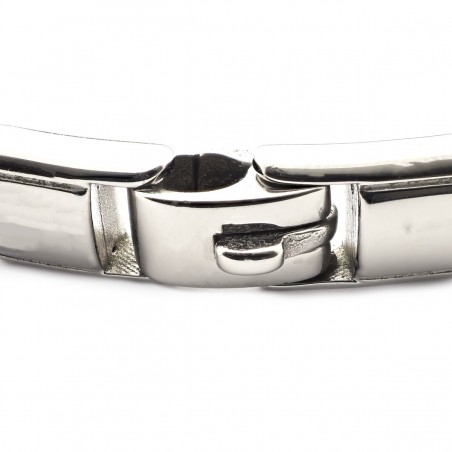 Avec une longueur totale de 22 cm, ce bracelet est idéal pour habiller le poignet d'un homme en toutes circonstances. Son argenté apporte une touche d'éclat à la discrétion du métal, tandis que sa forme rigide assure un maintien parfait.
