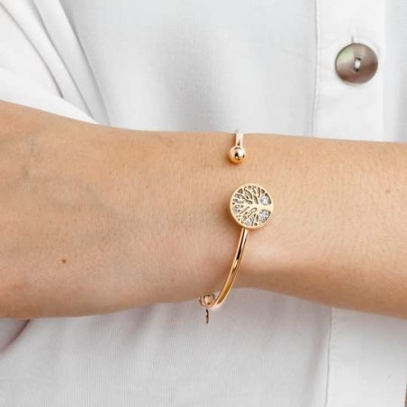 Bracelet Rigide Lotus Style femme en acier rosé avec un arbre de vie