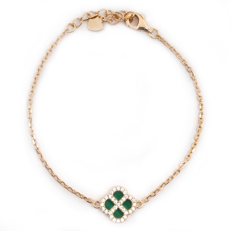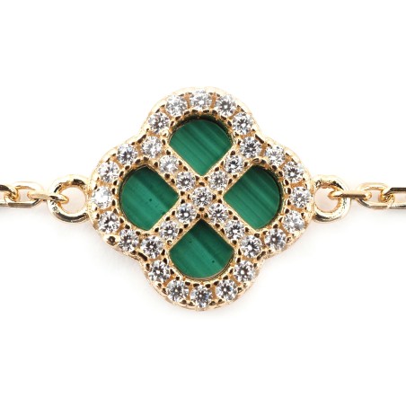Bracelet Silver Pop - Femme - Argent Doré - Oxydes de zirconium et Malachite - Trèfle