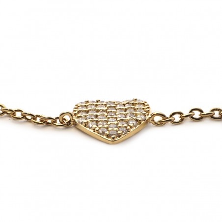 Bracelet souple Carador cœur empierré d'oxydes de zirconium en plaqué or