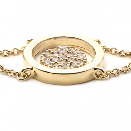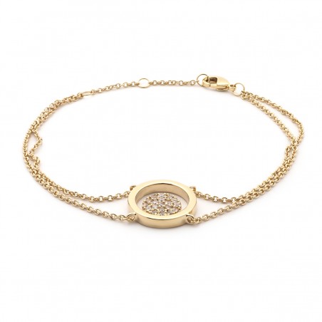 Bracelet souple Carador double chaînes avec cercles enlacés en plaqué or