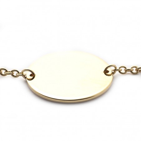 Ajoutez une touche d'élégance à votre poignet avec ce Bracelet souple Carador en plaqué or. Ce bijou féminin se compose d'une fine chaîne de type forçat, rehaussée par une plaque ronde. Cette dernière, lisse et brillante, peut être gravée pour une touche personnalisée. Les dimensions du motif sont de 15 x 15 mm, assurant une présence discrète mais remarquable à votre poignet. Le bracelet mesure au total 18 cm, permettant un ajustement parfait. Sa couleur dorée et son style classique en font un accessoire passe-partout, idéal pour toutes vos tenues, qu'elles soient décontractées ou plus habillées. Sans pierre ni ornement, ce bracelet Carador mise sur la simplicité et l'élégance du plaqué or. Il est livré gratuitement en bijouterie Carador. Faites-vous plaisir avec ce bijou intemporel ou offrez-le en cadeau à une personne chère.