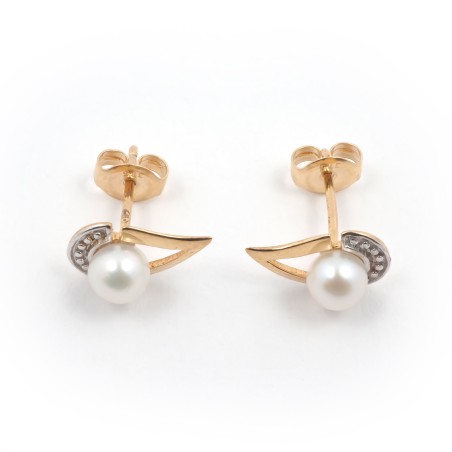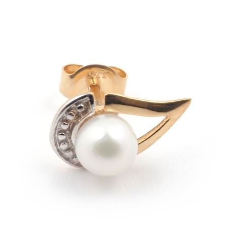 Jolies boucles d'oreilles en forme de larme : or jaune 375/000 et perle.