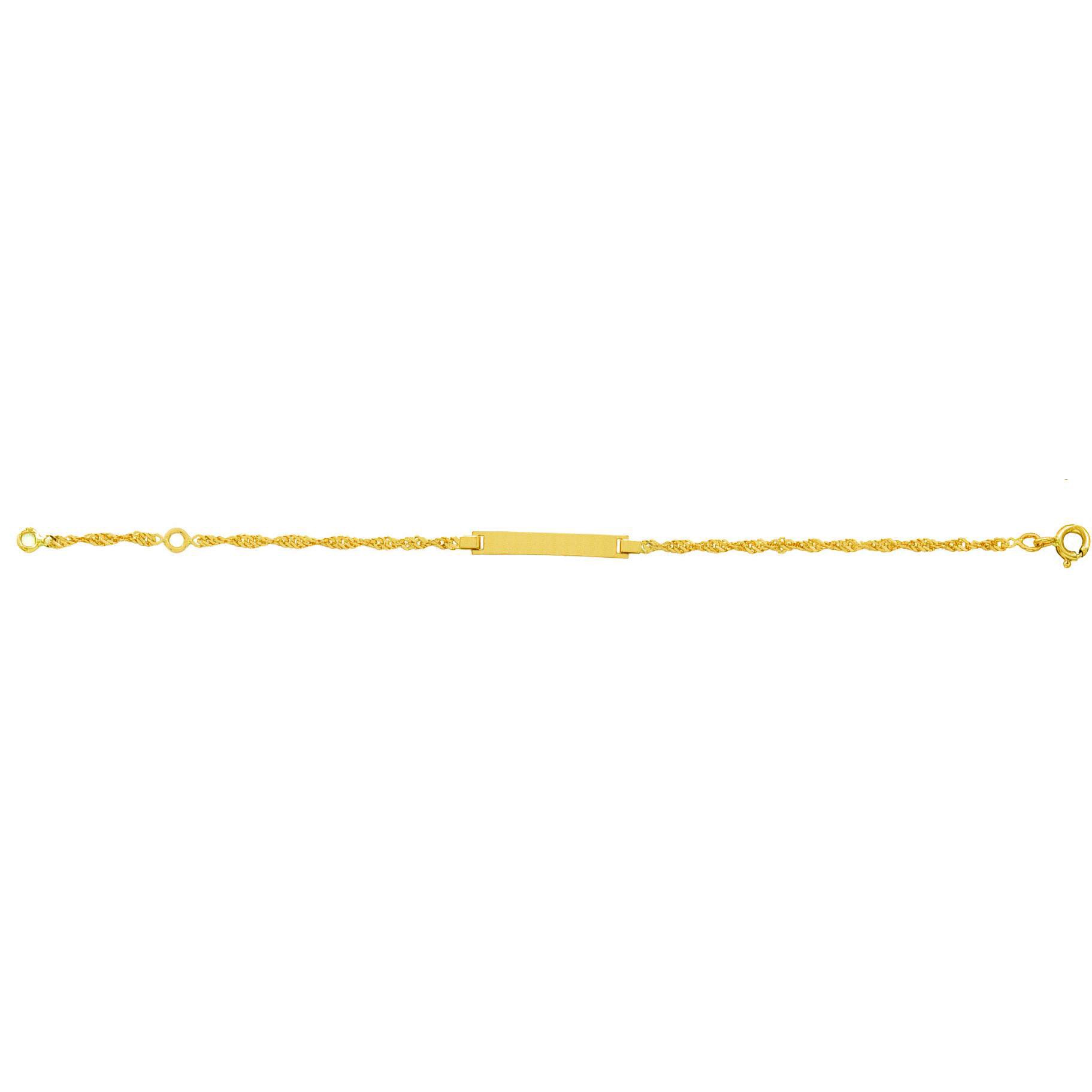 Offrez à votre enfant un cadeau précieux avec le Bracelet Identité Bébé de Carador, réalisé en Or 375/000. D'une longueur de 14 cm, ce bracelet est conçu pour s'adapter parfaitement à la délicatesse des poignets des bébés. Son design classique et élégant est rehaussé par une plaque rectangulaire de 2,2 cm, idéale pour graver le prénom de votre enfant ou une date spéciale.