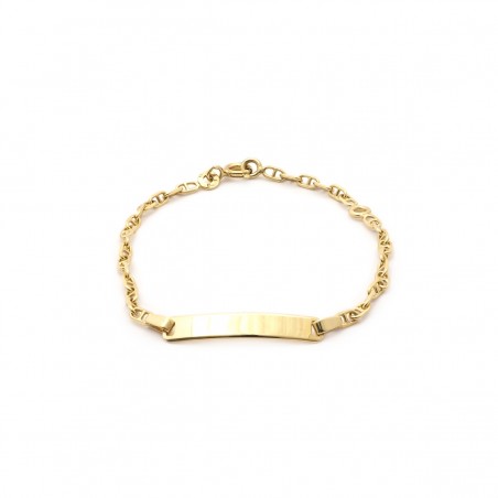 Carador vous propose cette magnifique gourmette bébé en or 375/000, mesurant 14 cm. Ce bracelet muni d'une plaque à graver rectangulaire montée sur une chaine maille marine habillera avec délicatesse et élégance le poignet de votre bébé.