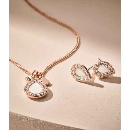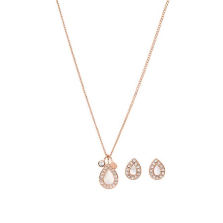 Nous avons sélectionné pour vous ce magnifique coffret collier et boucles d'oreilles en acier rose gold. Fin et féminin ces bijoux sauront gagner votre cœur.