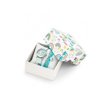 Coffret Montre Certus Junior fille cuir bleu papillons accompagnée d'un bracelet
