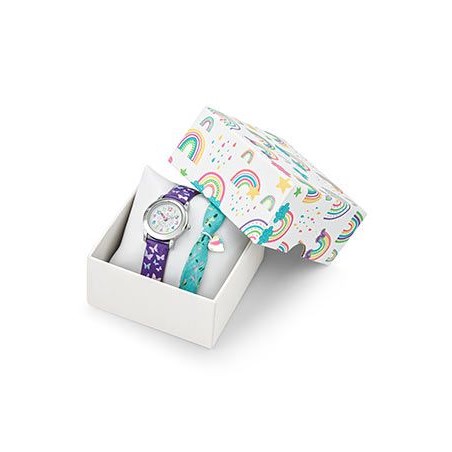 Coffret Montre Certus Junior fille cuir violet papillons accompagnée d'un bracelet