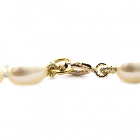 Ce modèle est doté d'un fermoir à ressort en or jaune 375/000, et de perles d'eau douce de 3,5 à 4 mm.