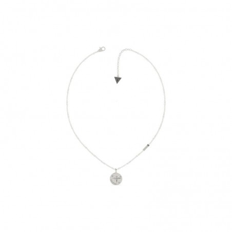 Ce modèle en acier rhodié est composé d’une chaine et d’un pendentif en forme de boussole et portant l’inscription manuscrite : Guess. des cristaux de swarovski apportent brillance et élégance.