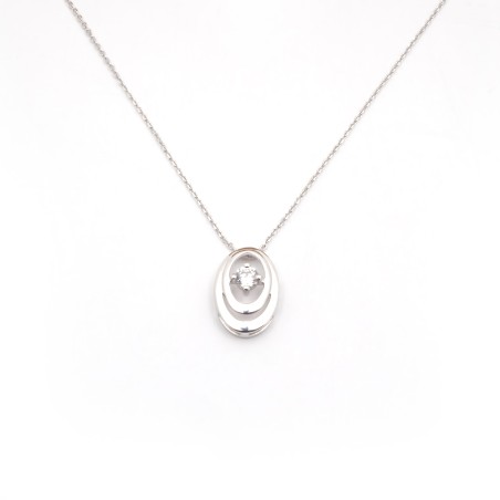 Le collier spirales Carador, en or blanc 375/000 est un bijou original et élégant à la fois. Il se compose d'une délicate chaine maille forçat de longueur 42 + 3 cm et d'un motif formé de deux ellipses ornées d'un oxyde de zirconium.