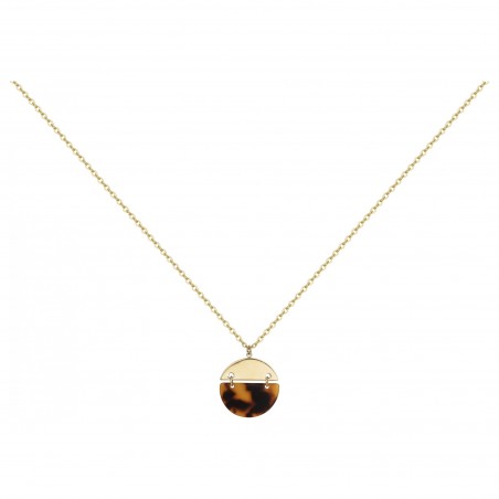 Il se compose d'une chaîne en acier maille forçat doré ainsi que d'un pendentif en acétate de couleur marron.