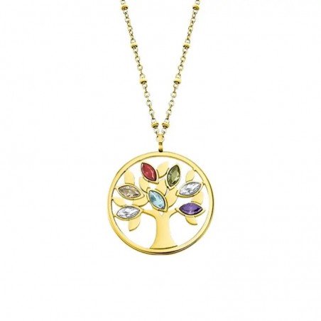 Collier Arbre de vie Lotus Style Femme en acier doré