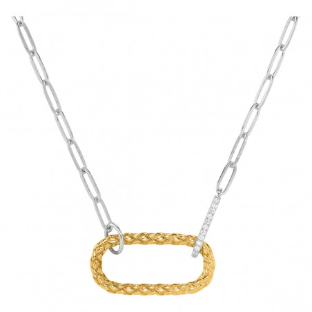 Il se compose d'une chaîne en argent 925/00, ainsi que d'un pendentif également en argent 925/00 de couleur dorée ornée d'oxyde de zirconium.