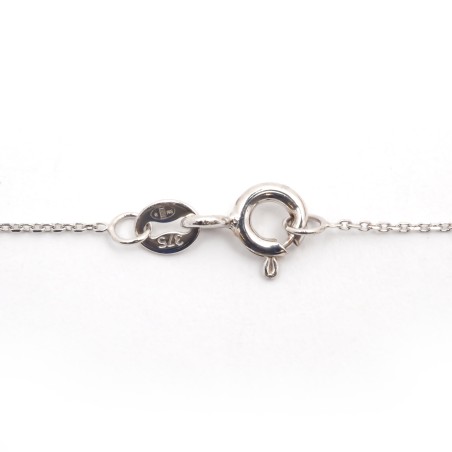 Votre bijouterie Carador a pris soin de sélectionné pour vous, ce charmant collier en or blanc 375/000 et oxyde de zirconium de 0,08 cts. Il se compose d'une chaine mesurant 40 cm et d'un pendentif.