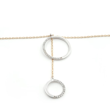 Légéreté et élégance sont les termes qui décrivent le mieux le collier de la collection graphique by Carador. Il se compose d'une délicate chaine maille forçat de 42 + 3 cm et de deux cercles suspendus ornés d'oxydes de zirconium. Un bijou en or jaune 375/000.