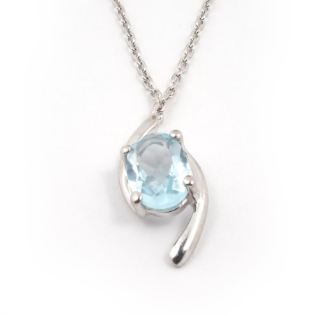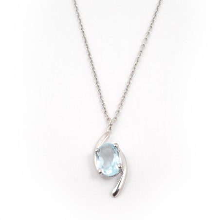 Ce modèle affiche une maille forçat en or blanc 375/000 et d’un motif en courbes délicieuses serties d'une pierre précieuse bleu clair.